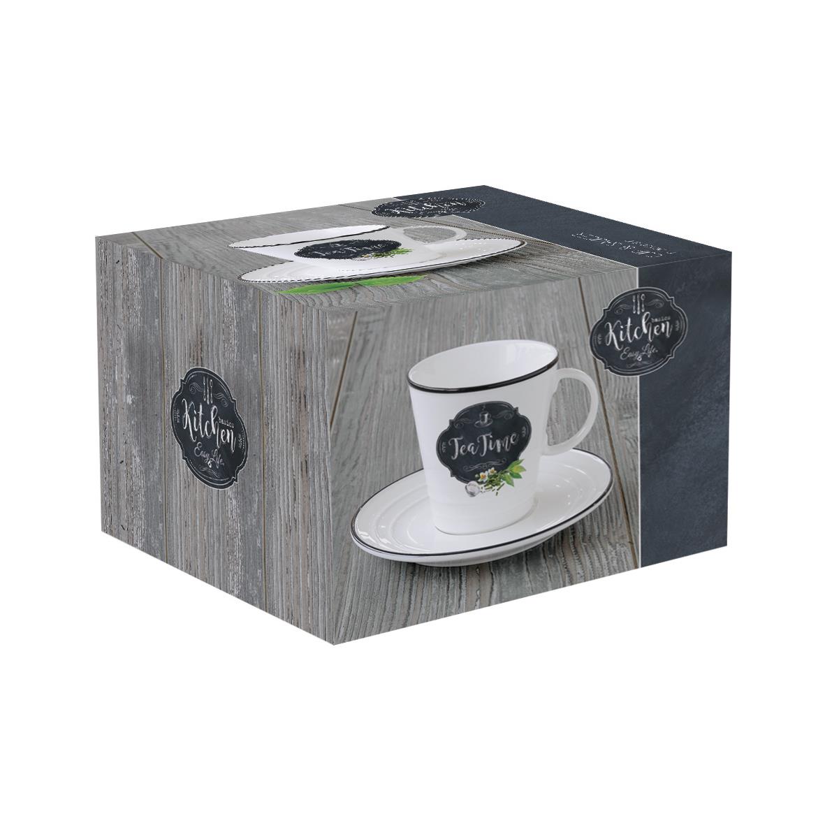 Cana albă cu inscripția Tea Time este realizată din porțelan de cea mai bună calitate.