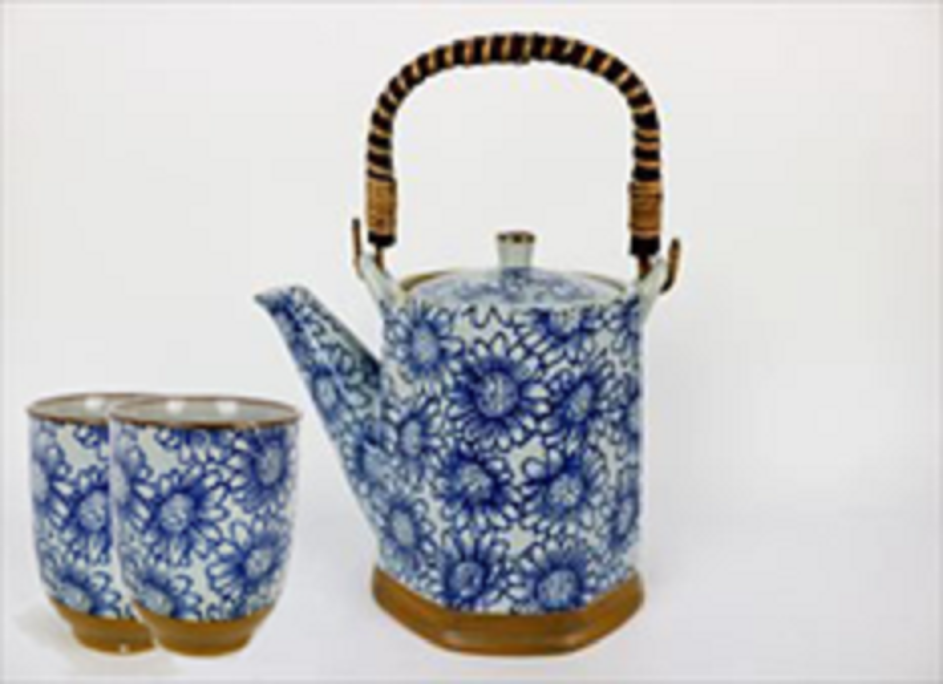 Set ceainic + 2 cesti - Floral albastru este perfect pentru ceaiul tău preferat.