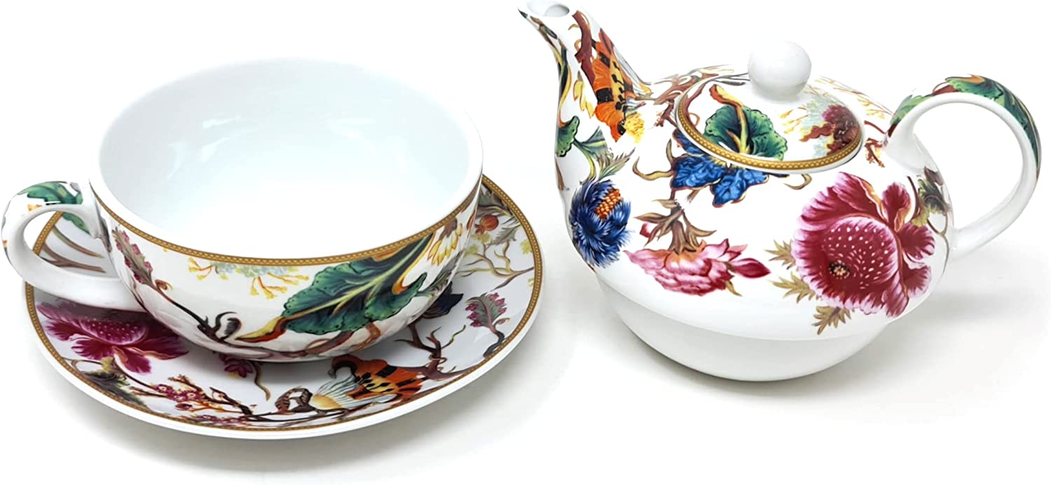 Tea for one - Anthina, din portelan, cu un design floral si intens colorat.