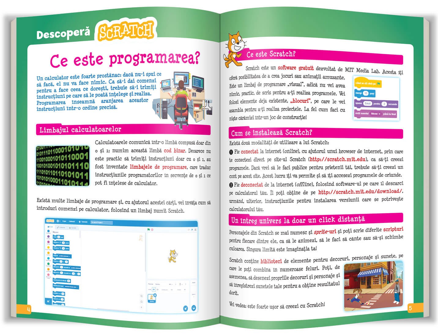 Atunci, această carte este perfectă pentru tine. Cu câteva click-uri, poți să-ți creezi propriile animații interactive cu ajutorul programului Scratch și să devii un programator genial.