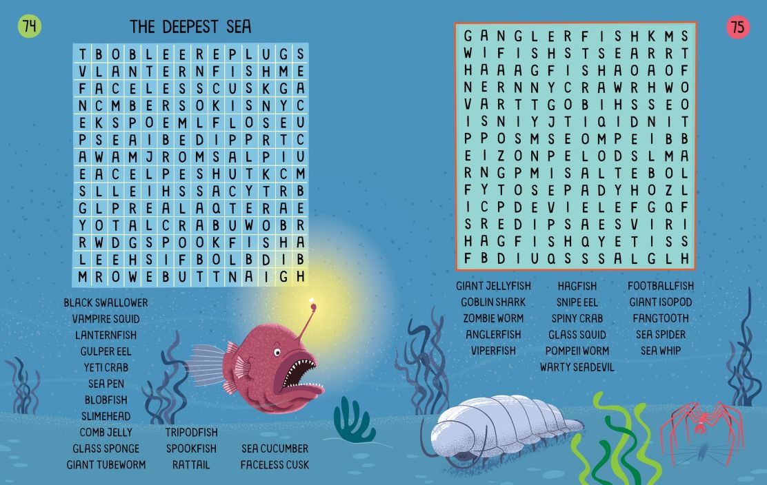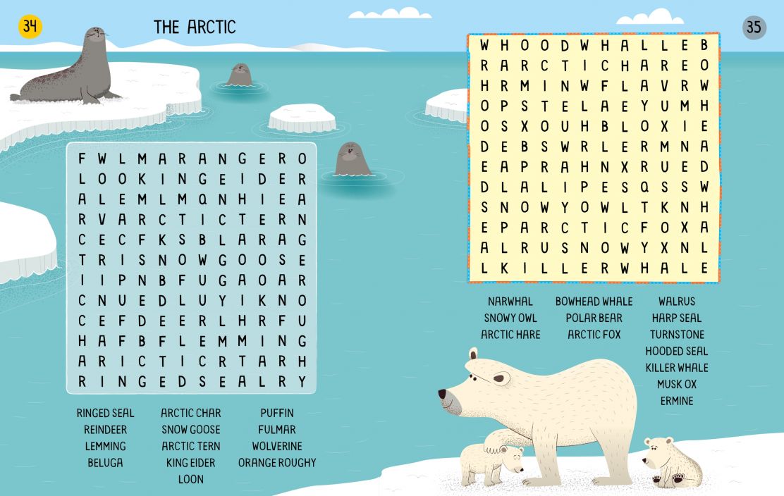 The puzzles feature creatures in their natural habitats, from tigers in the jungle to desert scorpions, and from red pandas in the Himalayas to deep-ocean vampire squid. And with over 1,200 animals to find, kids will be word-hunting for weeks. The wordsearches grow gradually more challenging throughout the book and are perfect for quiet times alone or playing with friends and family. All the answers can be found at the back of the book.