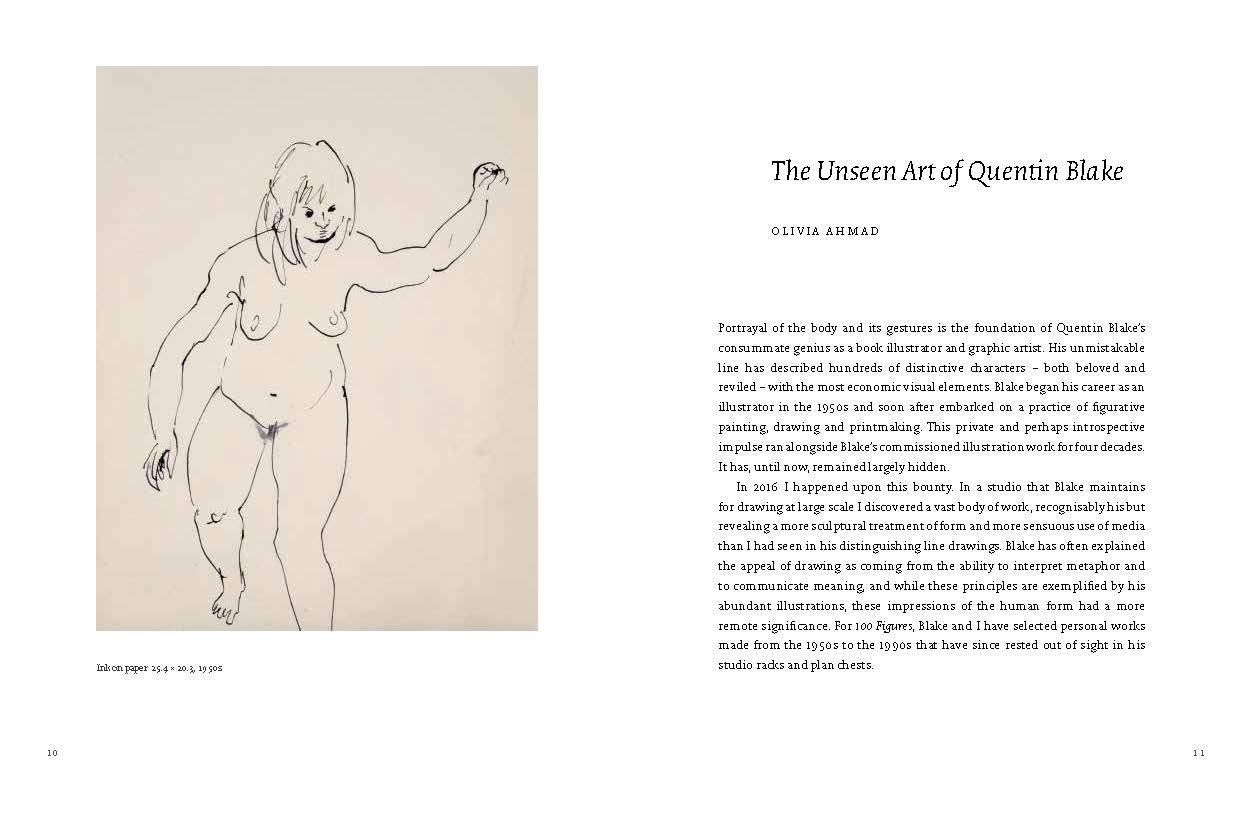 Quentin Blake s illustrations are instantly recognisable to millions of people around the world. A new exhibition to be held at London s House of Illustration will explore an unusual aspect of Blake s work, however, exhibiting for the first time 100 examples of his works of art. 100 Figures, will feature all of the 100 exhibited works ranging from large-scale oil paintings to drawings and prints, created between the 1950s and today. Works included date back to his post-grad years in the 1950s when he struggled to make a living as an illustrator and took life-drawing classes at Chelsea School of Art. It was here that he first engaged with the human figure, but soon, having observed how the human body behaves, he found he was able to draw it from memory in any pose, working from his vivid imagination. 100 Figures will also offer the chance to catch a rare glimpse of early oil paintings by Blake some painted on hardboard since he was unable to afford canvases at that time and painted using commercial house-painters brushes.