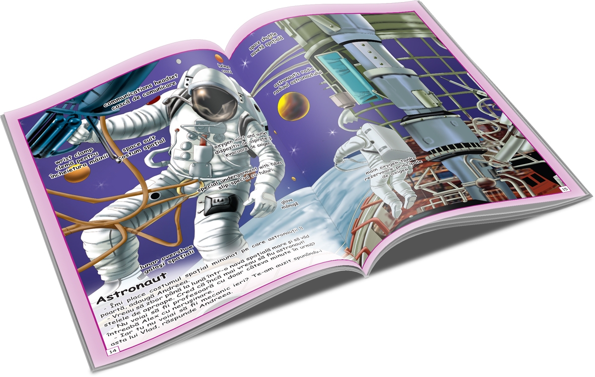 Colectia 1000 de cuvinte in engleza reprezinta o colectie de carti de cuvinte ilustrate frumos, care ii ajuta pe copii sa asocieze cuvintele cu obiecte din viata de zi cu zi. Andreea si Alex, doua personaje incantatoare, ii insotesc pe copii in calatoria lor dintr-o destinatie plina de culori intr-alta.