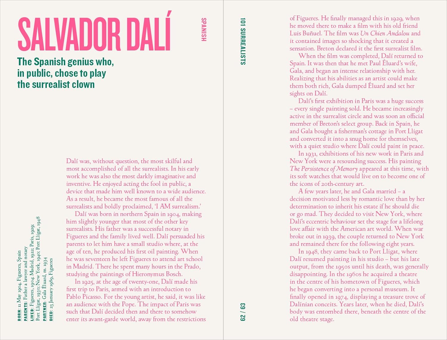 Featuring 101 artists, from the famous – Duchamp, Dali, Magritte, Miro, Carrington, Kahlo, Picabia, Ernst and others – to the neglected – Mesens, Rimmington, Sage, Fini, Bellmer, Colquhoun and Gonzalez – this book draws on the author’s personal knowledge of the Surrealists, capturing in concise form their life histories, idiosyncrasies and often-complex love lives. Surrealism was both spectacular and international, shaped by the darkest, most irrational workings of the unconscious. Shocking, witty and always entertaining, Morris's potted summaries and punchy anecdotes illuminate striking variations in artistic approach to the Surrealist philosophy, both in the artists’ works and lives.