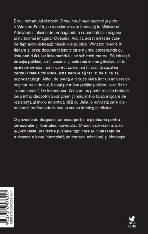 O poveste de dragoste, un eseu politic, o pledoarie pentru democrație și libertatea individului, 1984 este una dintre puținele cărți care au cutezanța de a descrie o lume întemeiată pe teroare, minciună și ideologie.