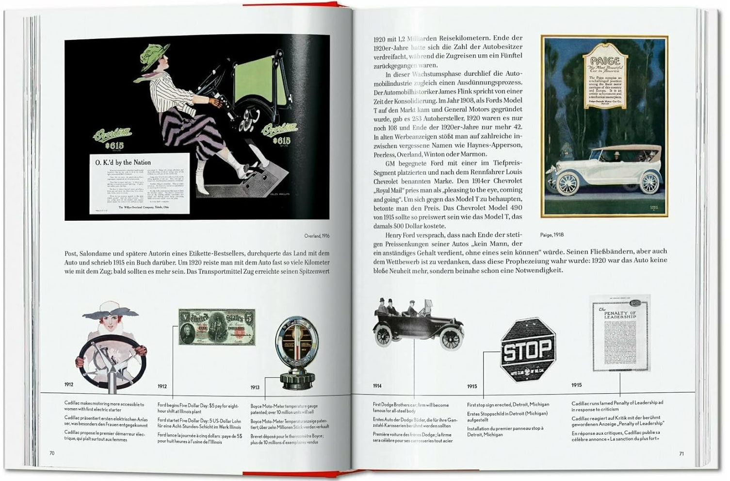 Time-travel through the Automobile Age with a collection that puts you in the driver's seat. 20th Century Classic Cars offers a lush visual history of the automobile, decade by decade, via 400-plus print advertisements from the Jim Heimann Collection. Using imagery culled from a century of auto advertising, this book traces the evolution of the auto from horseless carriage to rocket on wheels-and beyond. With an introduction and chapter text by former New York Times automotive writer Phil Patton, as well as an illustrated timeline, this volume highlights the technological innovations, major manufacturers and dealers, historical events, and influence of popular culture on car design.