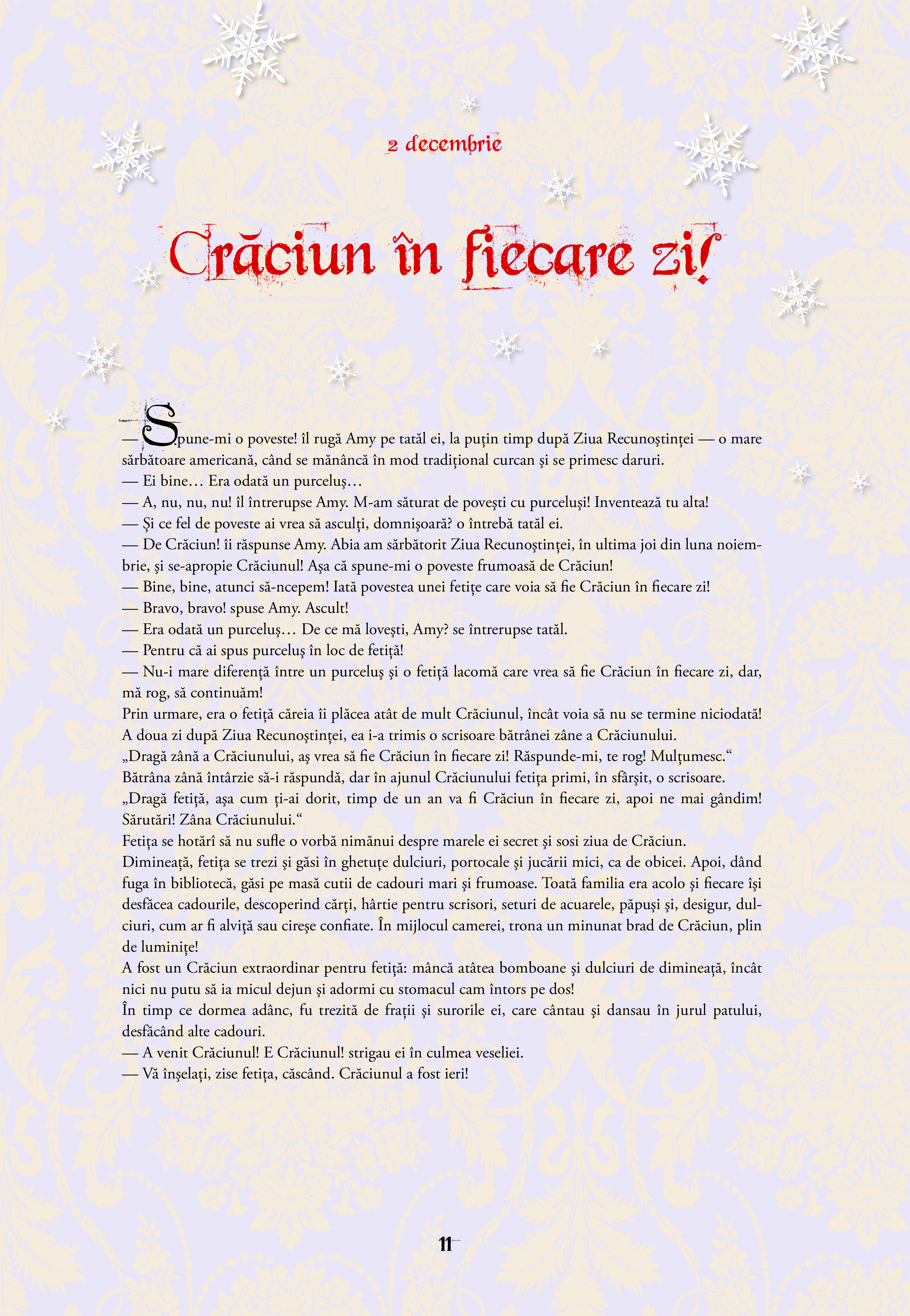 De pe 1 până pe 24 decembrie, copiii vor descoperi în fiecare zi câte o poveste sau o legendă celebră în lumea întreagă, care-i va duce pe tărâmul viselor, aşteptându-l pe Moş Crăciun.