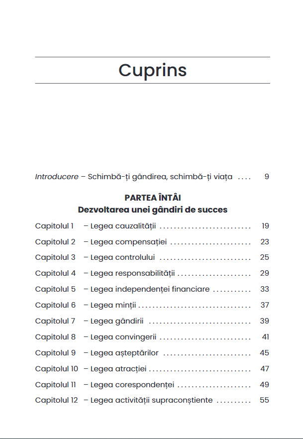 Brian Tracy îți dezvăluie 32 de legi universale care te vor ajuta să-ți stabilești obiective, să-ți organizezi timpul mai bine, să câștigi mulți bani și să faci investiții rentabile. Așa cum spune și Legea atracției (una dintre cele 32), „ești un magnet viu“. Gândind pozitiv, vei atrage în viața ta oameni, situații și oportunități care vor fi în armonie cu gândurile și sentimentele tale.