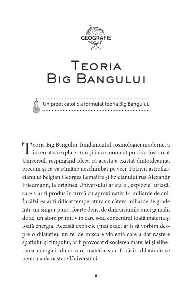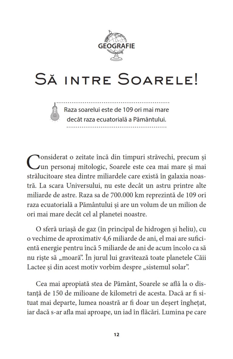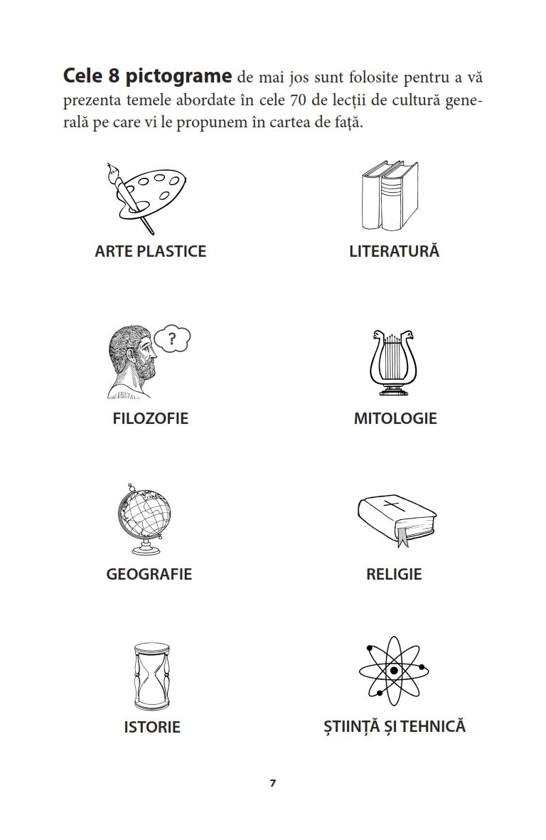 Nu ai timp suficient ca sa aprofundezi anumite cunos­tinte, dar ti-ai dori sa-ti imbogatesti cultura generala? In aceasta carte vei gasi aproximativ 70 de lectii pe di­verse teme: filozofie, istorie, literatura, mitologie, religie, stiinta si tehnica etc, care te vor ajuta sa-ti consolidezi cultura generala intr-un mod distractiv!