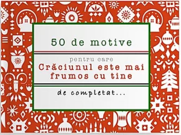 Crăciunul acesta cadourile vin din suflet. Am creat ediția specială de Crăciun a cărților 50 de motive. Fie că este vorba de tradiții de familie, amintiri dragi din anii trecuți sau pur și simplu gânduri frumoase, noi te ajutăm să le pui pe hârtie.