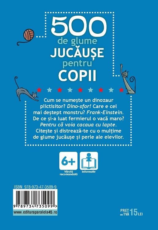 Cum se numește un dinozaur plictisitor? Dino-sfor! Care e cel mai deștept monstru? Frank-Einstein. De ce și-a luat fermierul o vacă maro? Pentru că voia cacaua cu lapte. Citește și distrează-te cu o mulțime de glume jucăușe și perle ale elevilor.