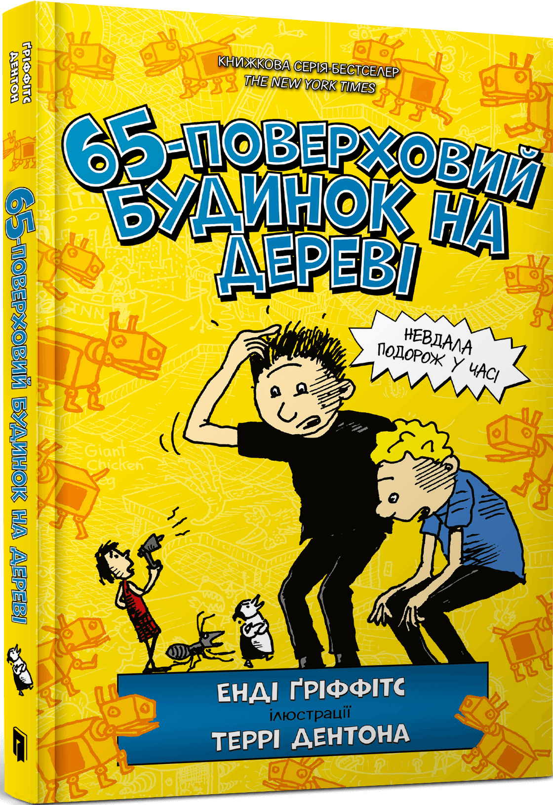 Енді та Террі живуть у 65-поверховому будинку на дереві. (Він раніше був 52-поверховим, але вони добудували ще 13 поверхів.) Тепер там є перукарня для тварин, поверх, де можна щодня святкувати день народження (навіть якщо він припадає на інший день), кімната з вибуховими очима, крамниця з льодяниками, яма з сипучим піском, мурашина ферма й машина часу... яка дуже знадобиться хлопцям, бо Террі напартачив (знову) і будинок на дереві не пройшов інспекції систем захисту. Чи зважаться Енді й Террі на неймовірну подорож у часі, щоб урятувати свій дім?