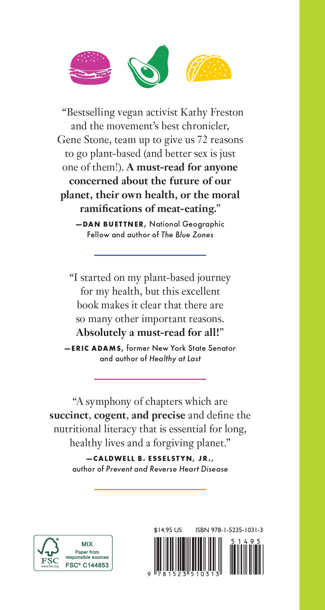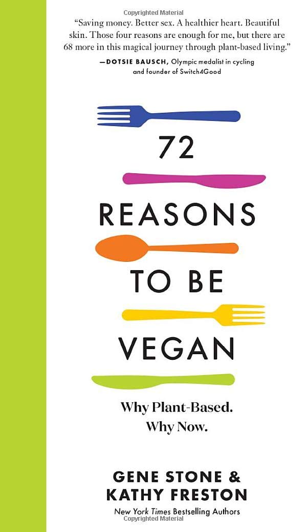 Those are just some of the 72 reasons we should all be vegan, as compiled and persuasively argued by Gene Stone and Kathy Freston, two of the leading voices in the ever-growing movement to eat a plant-based diet. While plenty of books tell you how to go vegan, 72 Reasons to Be Vegan is the book that tells you why. And it does so in a way that emphasizes not what you’d be giving up, but what you’d be gaining.