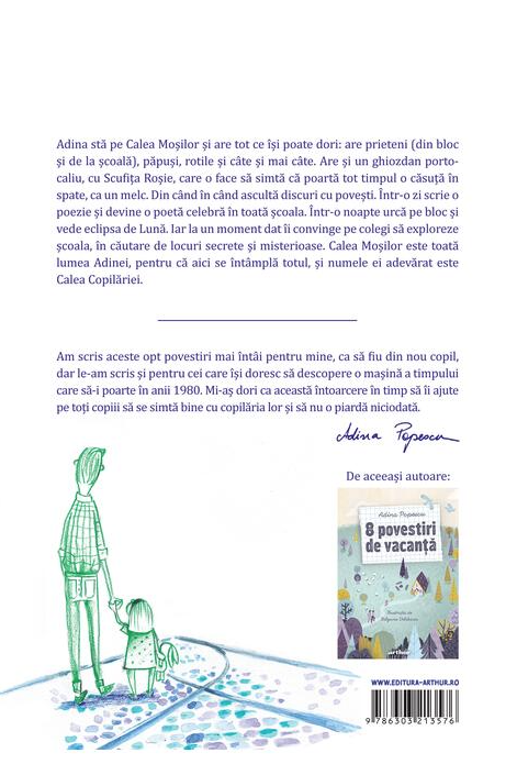 "Am scris aceste opt povestiri mai întâi pentru mine, ca să fiu din nou copil, dar le-am scris și pentru cei care își doresc să descopere o maşină a timpului care să-i poarte în anii 1980. Mi-aș dori ca această întoarcere în timp să îi ajute pe toți copiii să se simtă bine cu copilăria lor și să nu o piardă niciodată." - Adina Popescu