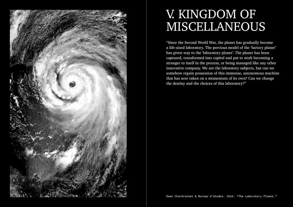 Plastiglomerates, surveillance robot dogs, fordite, artificial grass, antenna trees, Covid, decapitated mountains, drone-fighting eagles, standardized bananas: all of these specimens--some more familiar than others--are examples of the hybridity that shapes the current landscapes of science, technology and everyday life. Inspired by medieval bestiaries and the increasingly visible effects of climate change on the planet, French researcher Nicolas Nova and art collective DISNOVATION.ORG provide an ethnographic guide to the "post-natural" era in which we live, highlighting the amalgamations of nature and artifice that already coexist in the 21st century.
