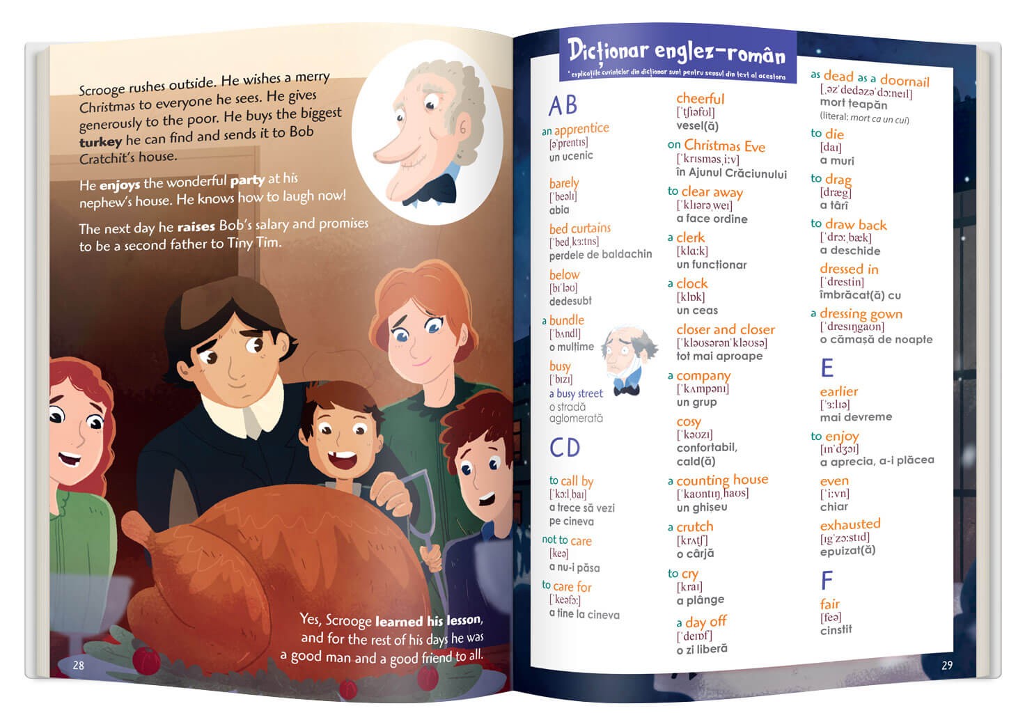 Îți dorești să citești în limba engleză Poveste de Crăciun? Cu Larousse, acum este simplu, fiindcă ai:
