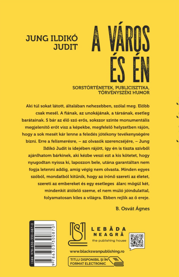 S bár az élő szó erős, sokszor szinte monumentális megjelenítő erőt visz a képekbe, megfelelő helyzetben rájön, hogy a sok mesét kár lenne a feledés jótékony tevékenységére bízni. Erre a felismerésre, – az olvasók szerencséjére, – Jung Ildikó Judit is idejében rájött, így én is tiszta szívből ajánlhatom bárkinek, aki kézbe veszi ezt a kis kötetet, hogy nyugodtan nyissa ki, lapozzon bele, utána garantáltan nem fogja letenni addig, amíg végig nem olvasta.