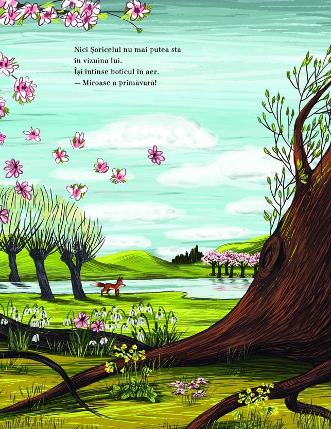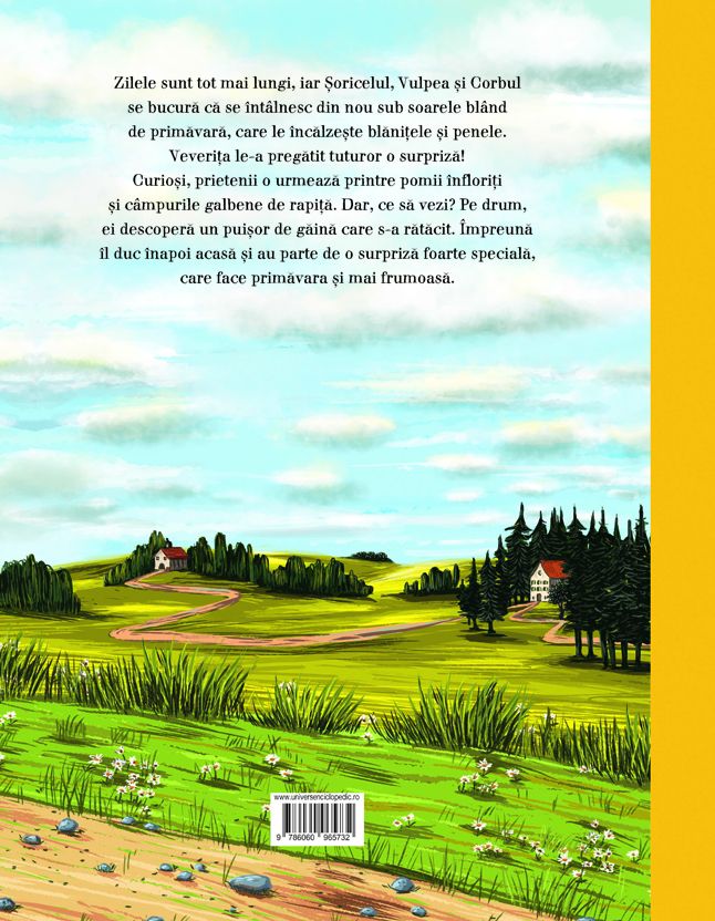 Zilele sunt tot mai lungi, iar Șoricelul, Vulpea și Corbul se bucură că se întâlnesc din nou sub soarele blând de primăvară, care le încălzește blănițele și penele.