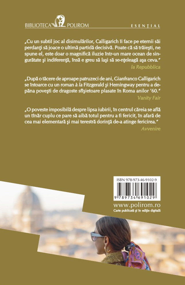 „După o tăcere de aproape patruzeci de ani, Gianfranco Calligarich se întoarce cu un roman à la Fitzgerald şi Hemingway pentru a depăna poveşti de dragoste sfâşietoare plasate în Roma anilor ’60.” (Vanity Fair)
