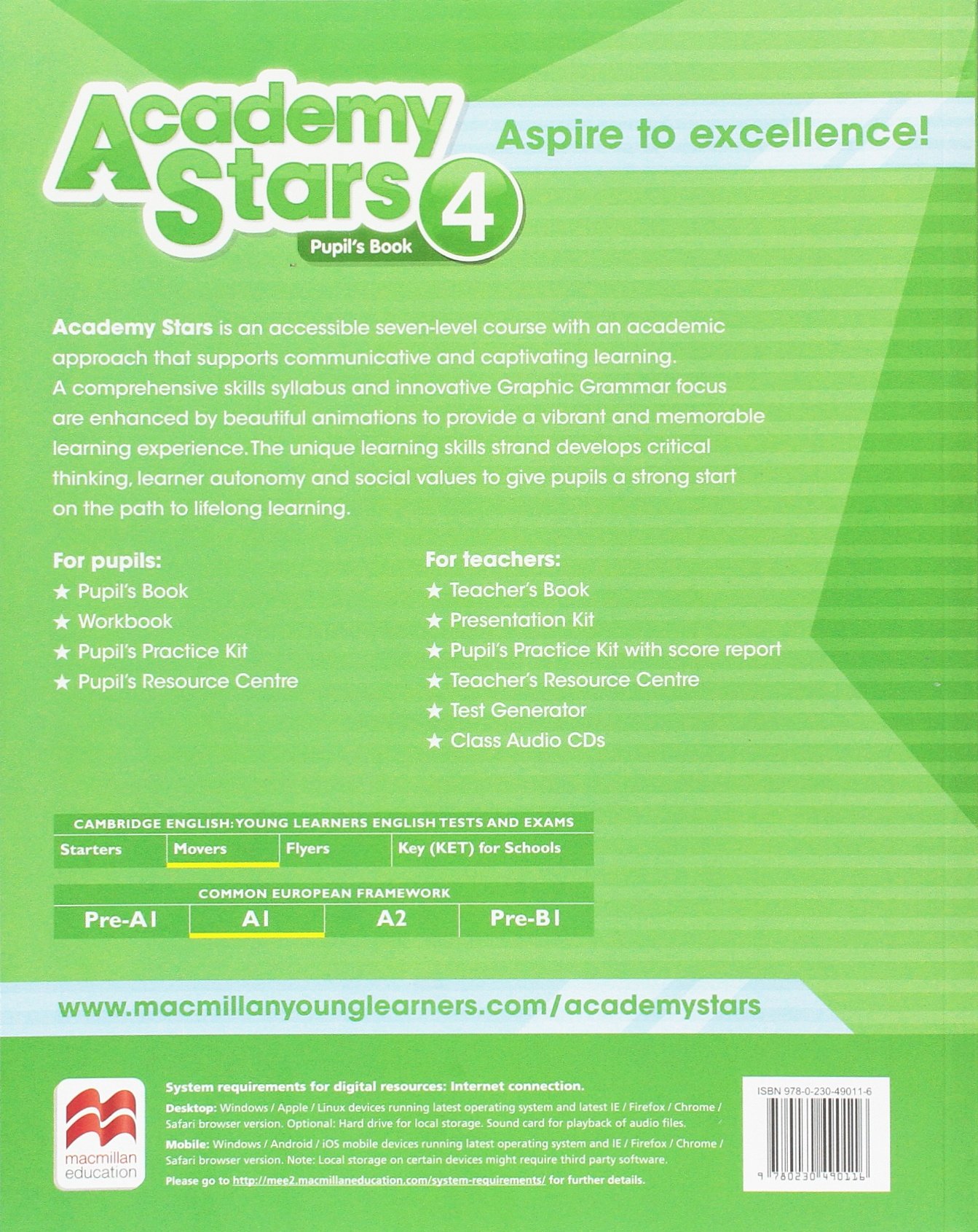 The Academy Stars Pupil's Book Pack provides multiple components that work together in and out of the classroom. The pack contains the print Pupil's Book plus an access code for the digital Pupil's Practice Kit and online Pupil's Resource Centre.