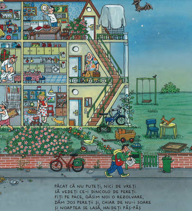 La parter se zugrăvesc pereții, copiii și pisicile se joacă în grădină, iar