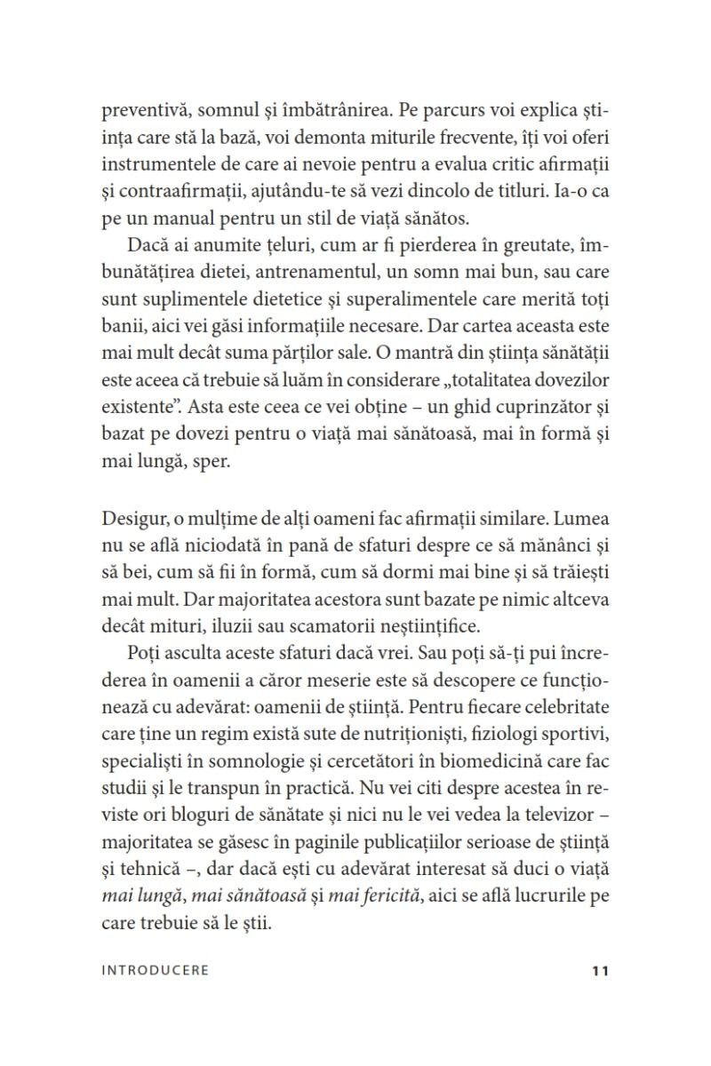 De la stres la grăsimi saturate, de la antrenamente fizice HIIT la terapie cu hormoni sau de la veganism la vitamine, această carte îți dezvăluie „fițele” legate de sănătate, demontează mi¬turile frecvente și explorează adevărata știință a unei sănătăți mai bune.