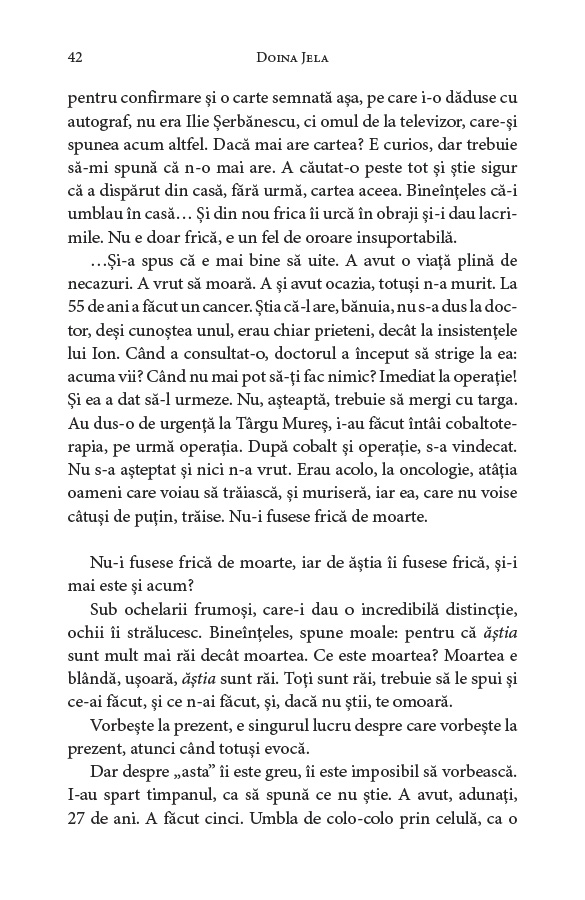 • „Am găsit în cartea aceasta, efectiv, toate elementele unei tragedii stricto sensu, o tragedie personală înscrisă în tragedia unei epoci și în tragedia literaturii române postbelice.” Matei Călinescu, Revista 22, nr. 24, 1998