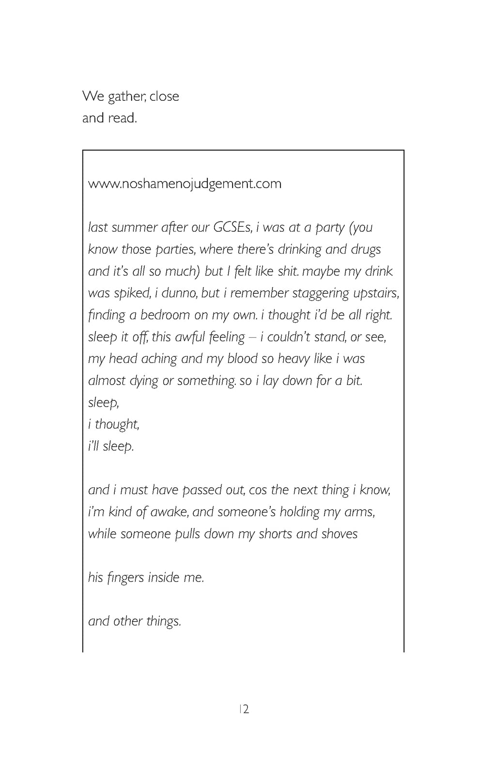 When an anonymous student posts on a website about the sexual abuse she suffered, and the school fails to deal with the situation, Cassie and her friends know it is time to act. A powerful verse novel about speaking and standing up for what's right.
