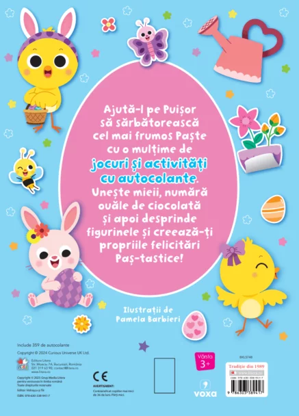 Ajută-l pe Puișor să sărbătorească cel mai frumos Paște cu o mulțime de jocuri și activități cu autocolante.