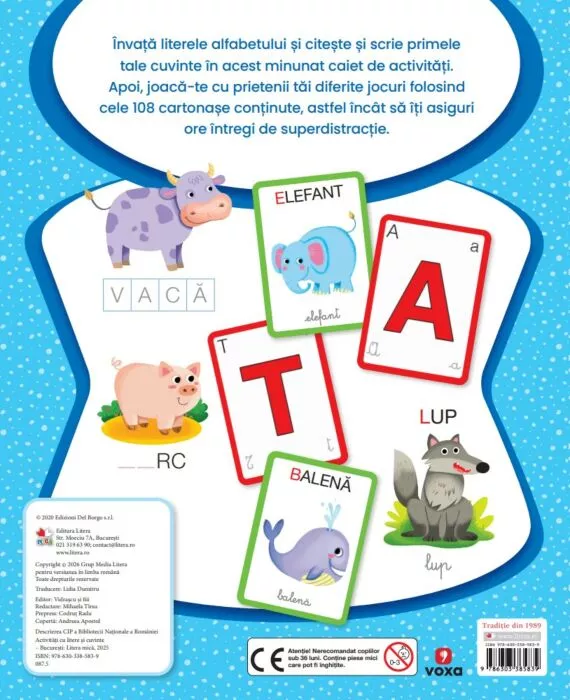 Învață literele alfabetului și citește și scrie primele tale cuvinte în acest minunat caiet de activități.