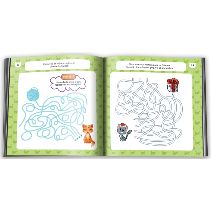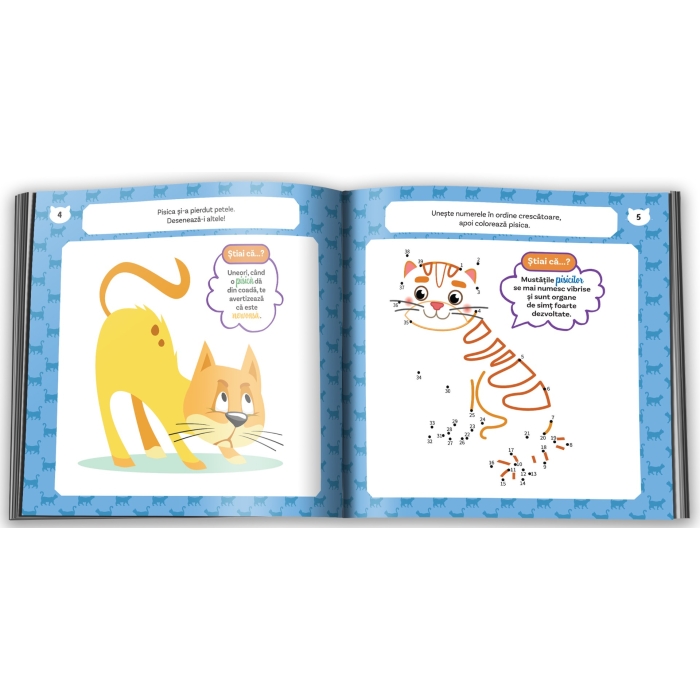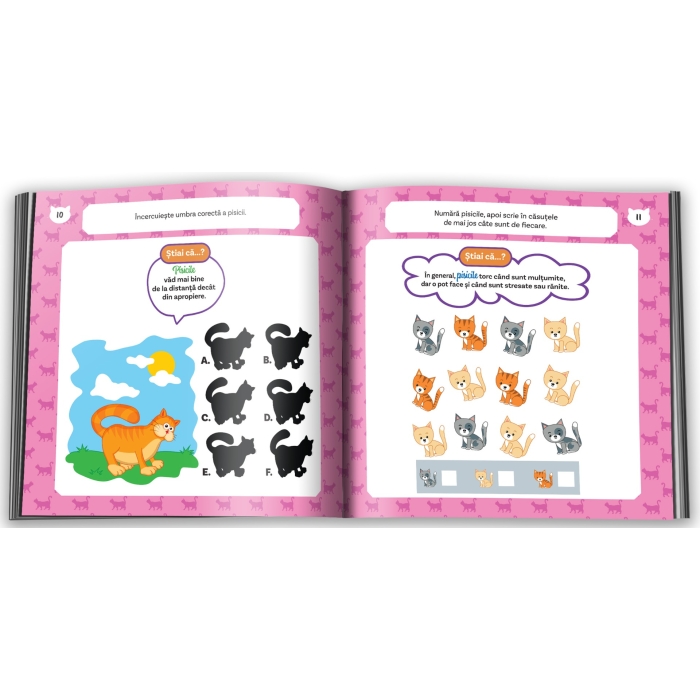 Știai că pisicile urăsc mirosul de citrice și că, de cele mai multe ori, miaună doar ca să comunice cu oamenii? „Activități și curiozități despre pisici” conține informații interesante și activități precum: