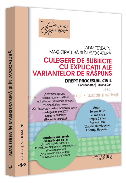 • Admiterea in magistratura si in avocatura. Culegere de subiecte cu explicatii ale variantelor de raspuns.2023 Drept procesual civil. Editia a V-a