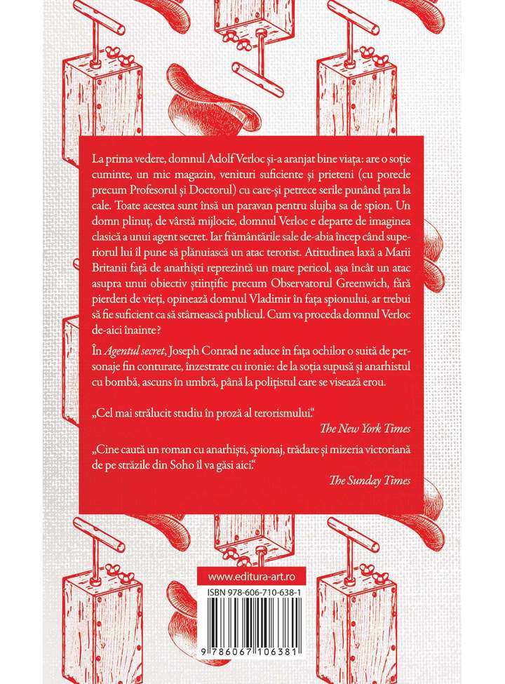 În Agentul secret, Joseph Conrad ne aduce în fața ochilor o suită de personaje fin conturate, înzestrate cu ironie: de la soția supusă și anarhistul cu bombă, ascuns în umbră, până la polițistul care se visează erou.