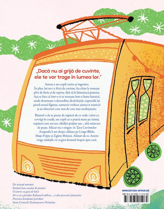 Băiatul e cât se poate de zăpăcit de ce vede: câini cu covrigi în coadă, un copil cu o piatră mare pe inimă, ospătari care servesc răbdări prăjite sau... altă mâncare de pește. Măcar nu e singur: în Țara Cuvintelor Anapoda îi are drept călăuze pe Linge-Blide, Mațe-Fripte și Zgârie-Brânză. Alături de ei, Anton trage nădejde că va găsi drumul înapoi spre casă.