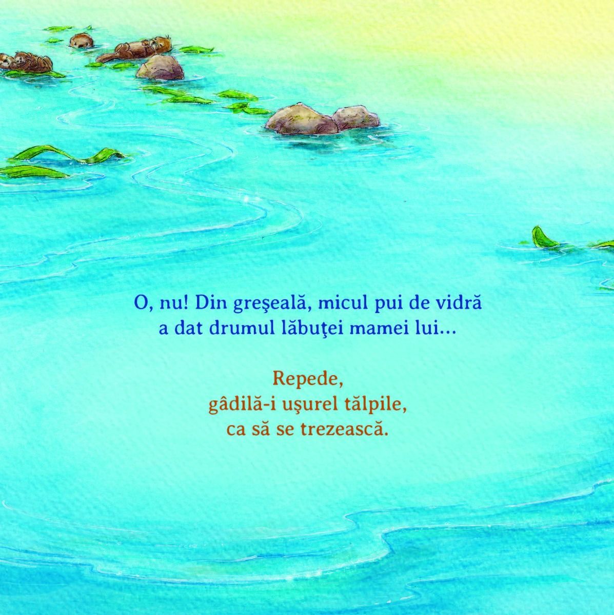 În timp ce doarme, micuțul pui de vidră dă drumul lăbuței mamei sale. Repede, gâdilă-i tălpile ca să se trezească și să nu se îndepărteze prea mult! Pornește împreună cu el înapoi la mama lui, pentru ca ea să-l poată strânge iarăși în brațe, cât mai curând.