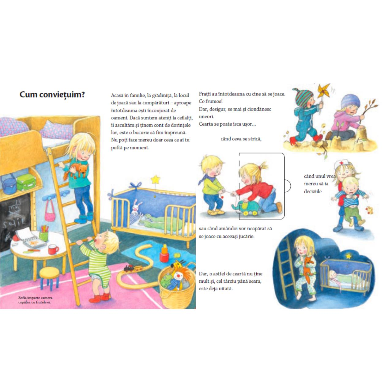 Acasă, la grădiniță, la locul de joacă – întâlnim peste tot alte persoane. Această carte la arată copiilor cum să interacționeze cel mai bine cu ceilalți și cum să evite conflictele. Să asculți, să-ți ceri scuze, să nu-i rănești pe alții sunt câteva metode pentru o bună înțelegere cu cei din jur. Datorită scenelor familiare luate din viața de zi cu zi, copiii pot empatiza ușor cu situațiile prezentate.