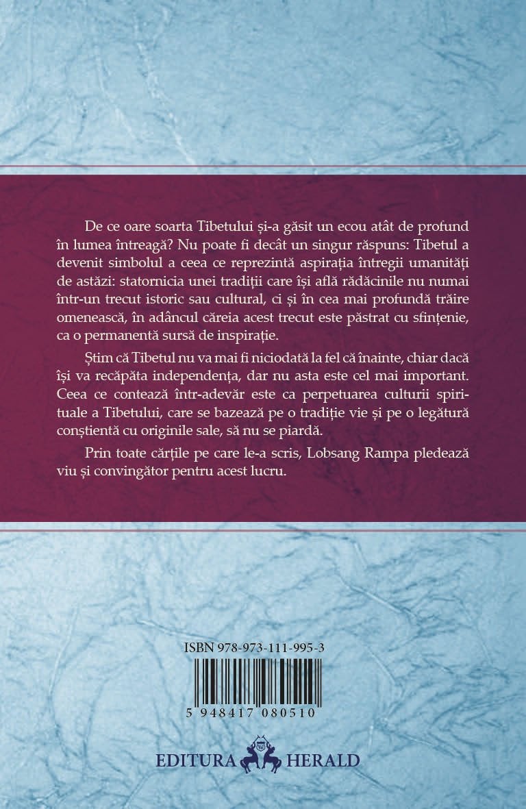 De ce oare soarta Tibetului si-a gasit un ecou atat de profund in lumea intreaga? Nu poate fi decat un singur raspuns: Tibetul a devenit simbolul a ceea ce reprezinta aspiratia intregii umanitati de astazi: statornicia unei traditii care isi afla radacinile nu numai intr-un trecut istoric sau cultural, ci si in cea mai profunda traire omeneasca, in al carei adanc acest trecut este pastrat cu sfintenie, ca o permanenta sursa de inspiratie.