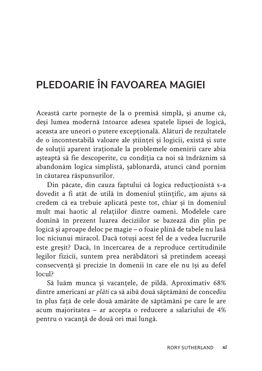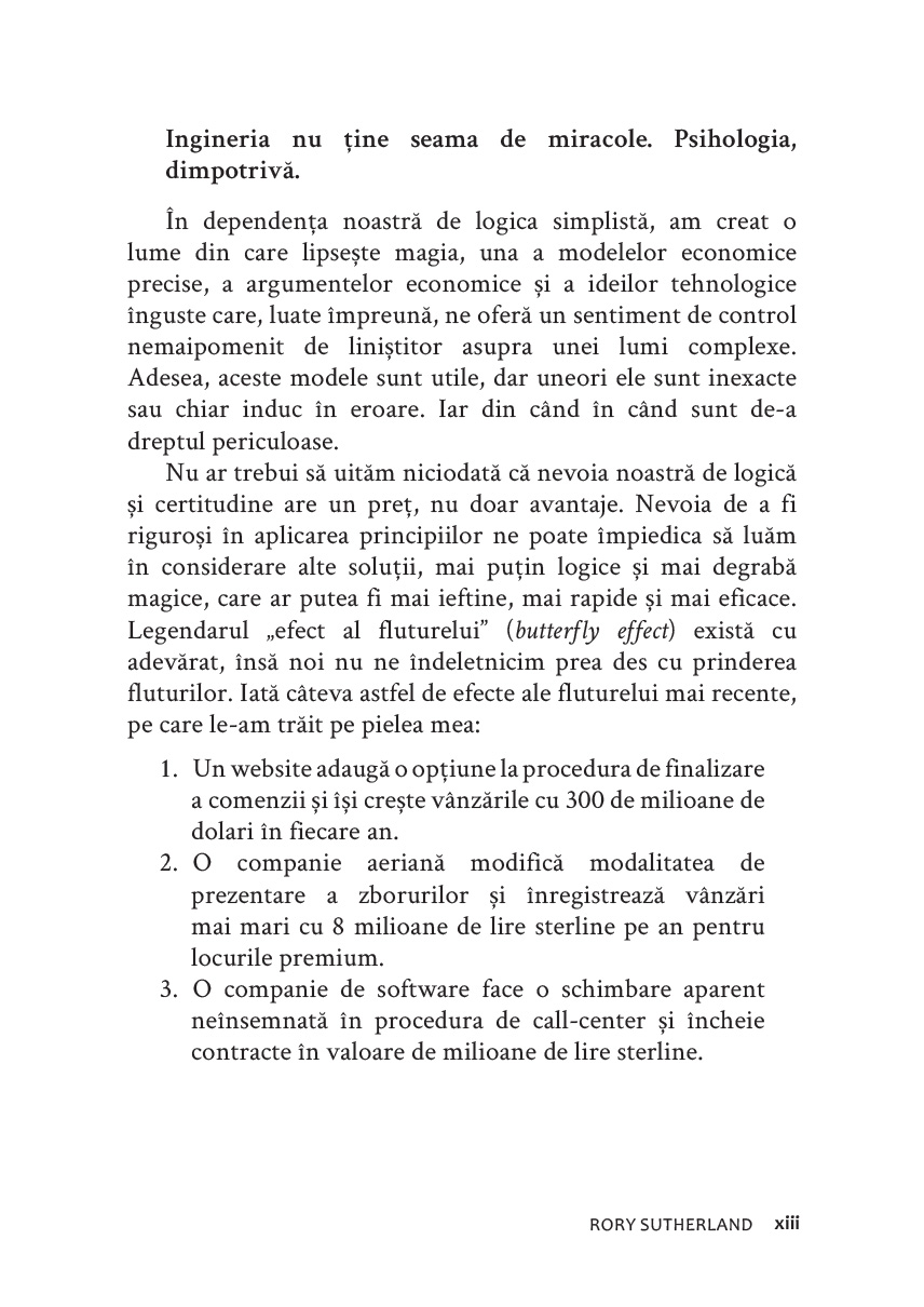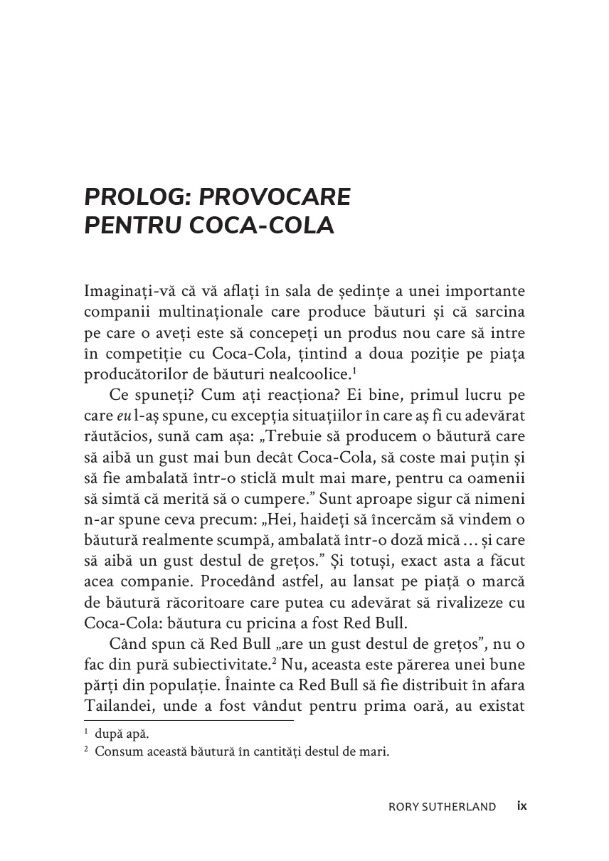 RORY SUTHERLAND este vicepreședinte al Ogilvy. Corespondent al The Spectator, este și fostul președinte al Institute of Practitioners in Advertising. Conferințele sale de la TED au înregistrat peste 6,5 milioane de vizionări.