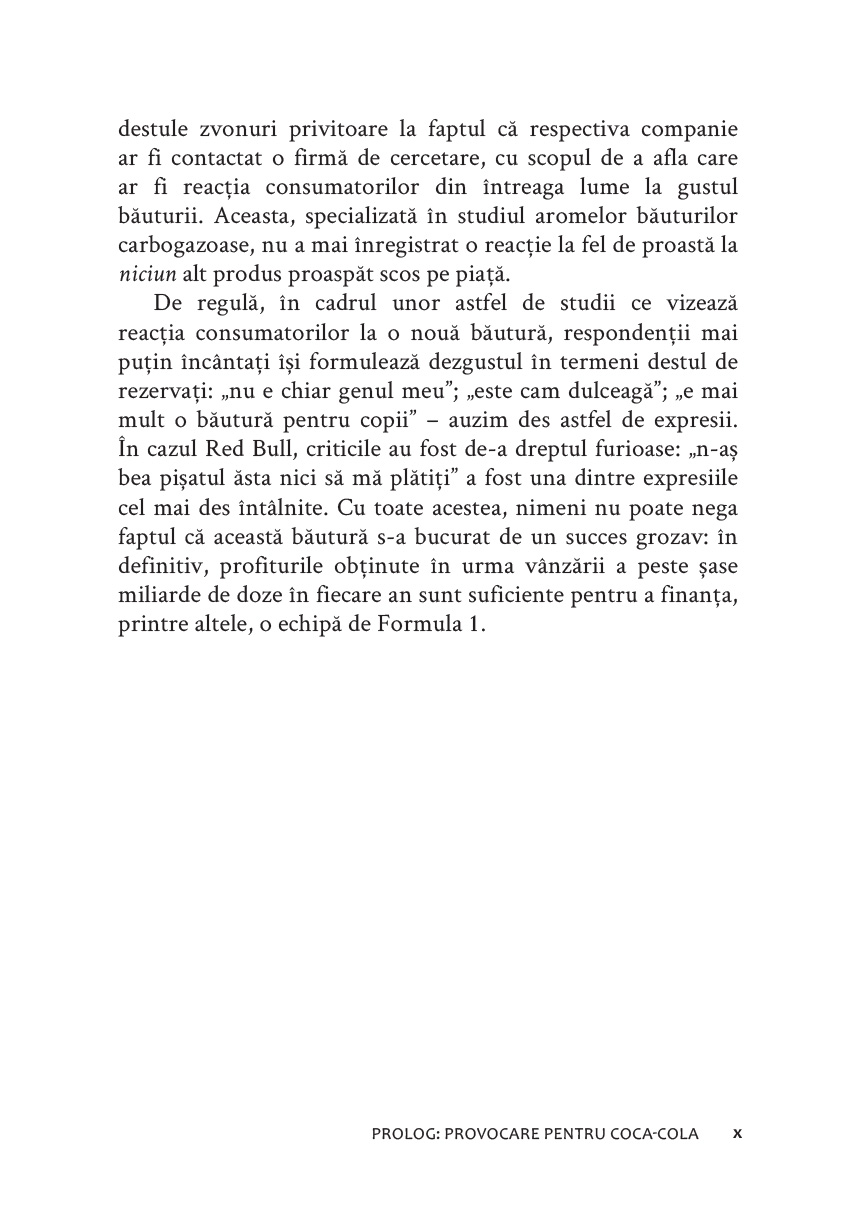 Oare de ce o fi Red Bull atât de popular, dacă nimănui – dar chiar nimănui! – nu-i place gustul? Oamenii sunt, într-un cuvânt, iraționali; își bazează deciziile pe niște semnale subtile (doza aia mică și albastră) și totodată pe calități mai obiective (aromă, preț, calitate). Lumea din jurul nostru este însă deopotrivă complicată și plină de aleatoriu. Asta înseamnă că succesul nu poate fi prezis stând cu nasul într-un raport contabil oarecare. Ca să atingem un filon de aur, trebuie să stăpânim arta enigmatică și strania știință a plăsmuirii unor idei irezistibile: alchimia.