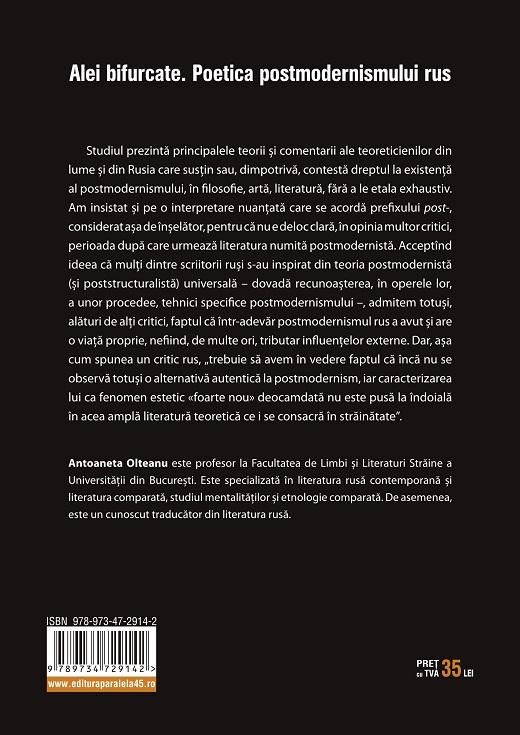 Studiul prezintă principalele teorii și comentarii ale teoreticienilor din lume și din Rusia care susțin sau, dimpotrivă, contestă dreptul la existență al postmodernismului, în filosofie, artă, literatură, fără a le etala exhaustiv. Am insistat și pe o interpretare nuanțată care se acordă prefixului post-, considerat așa de înșelător, pentru că nu e deloc clară, în opinia multor critici, perioada după care urmează literatura numită postmodernistă. Acceptînd ideea că mulți dintre scriitorii ruși s-au inspirat din teoria postmodernistă (și poststructuralistă) universală – dovadă recunoașterea, în operele lor, a unor procedee, tehnici specifice postmodernismului –, admitem totuși, alături de alți critici, faptul că într-adevăr postmodernismul rus a avut și are o viață proprie, nefiind, de multe ori, tributar influențelor externe. Dar, așa cum spunea un critic rus, „trebuie să avem în vedere faptul că încă nu se observă totuși o alternativă autentică la postmodernism, iar caracterizarea lui ca fenomen estetic «foarte nou» deocamdată nu este pusă la îndoială în acea amplă literatură teoretică ce i se consacră în străinătate”.