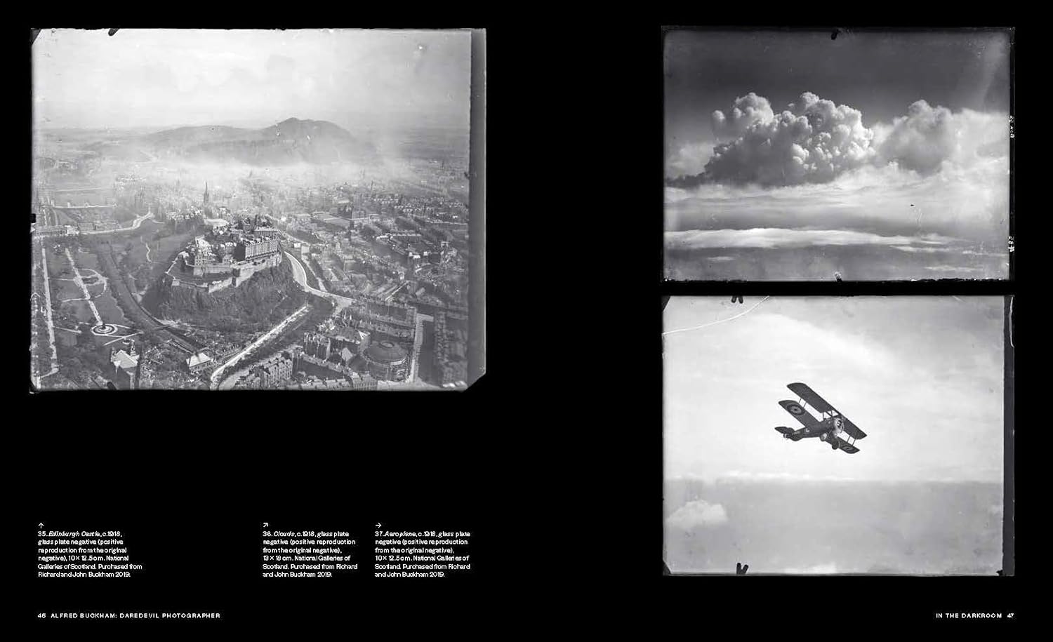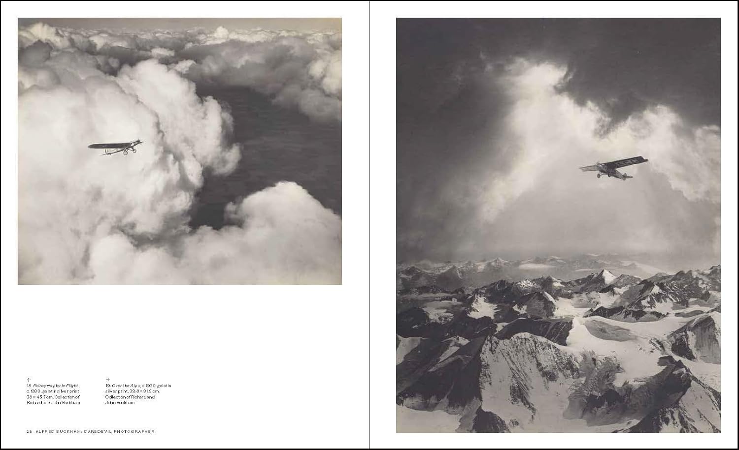 Leaving behind a comprehensive archive, Alfred Buckham wrote in detail about his exploits, including his nine crashes and how, to get the best images, he would stand up while flying in an open biplane, tying his right leg to the seat with a scarf, in order to loop the loop in 'perfect safety'.