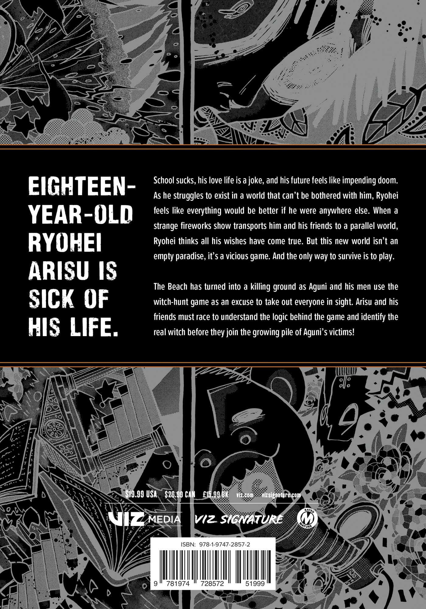 Eighteen-year-old Ryohei Arisu is sick of his life. School sucks, his love life is a joke, and his future weighs on him like impending doom. As he struggles to exist in a world that can't be bothered with him, Ryohei feels like everything would be better if he were anywhere else. When a strange fireworks show transports him and his friends to a parallel world, Ryohei thinks all his wishes have come true. But this new world isn't an empty paradise, it's a vicious game. And the only way to survive is to play.