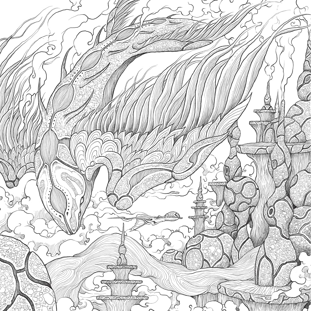 Illustrator extraordinaire Kerby Rosanes is here with his most far-out book yet, Alien Worlds, the third installment in his brilliant, internationally bestselling Worlds series, in which he transports colorists back into the Kerby-verse, dreaming up new alien worlds drawn in his signature super-detailed style.