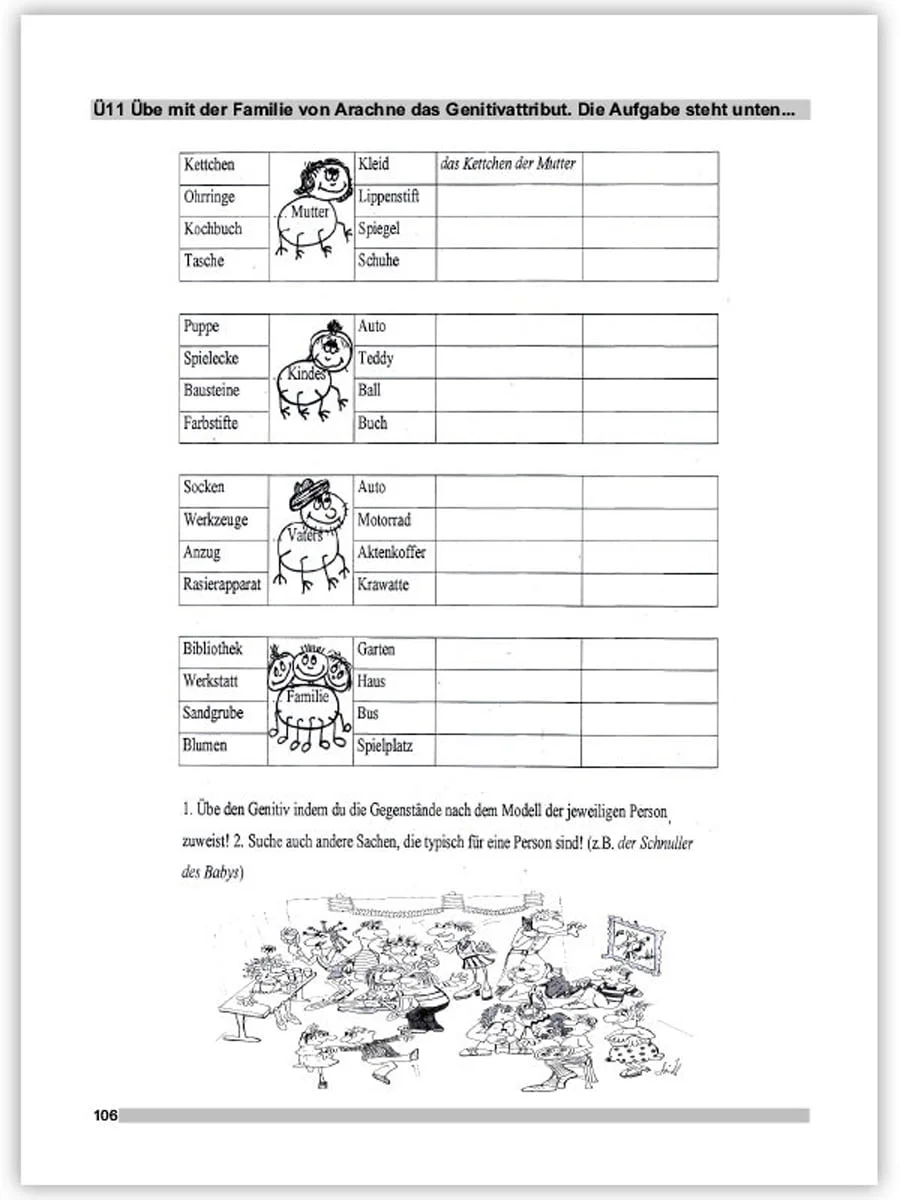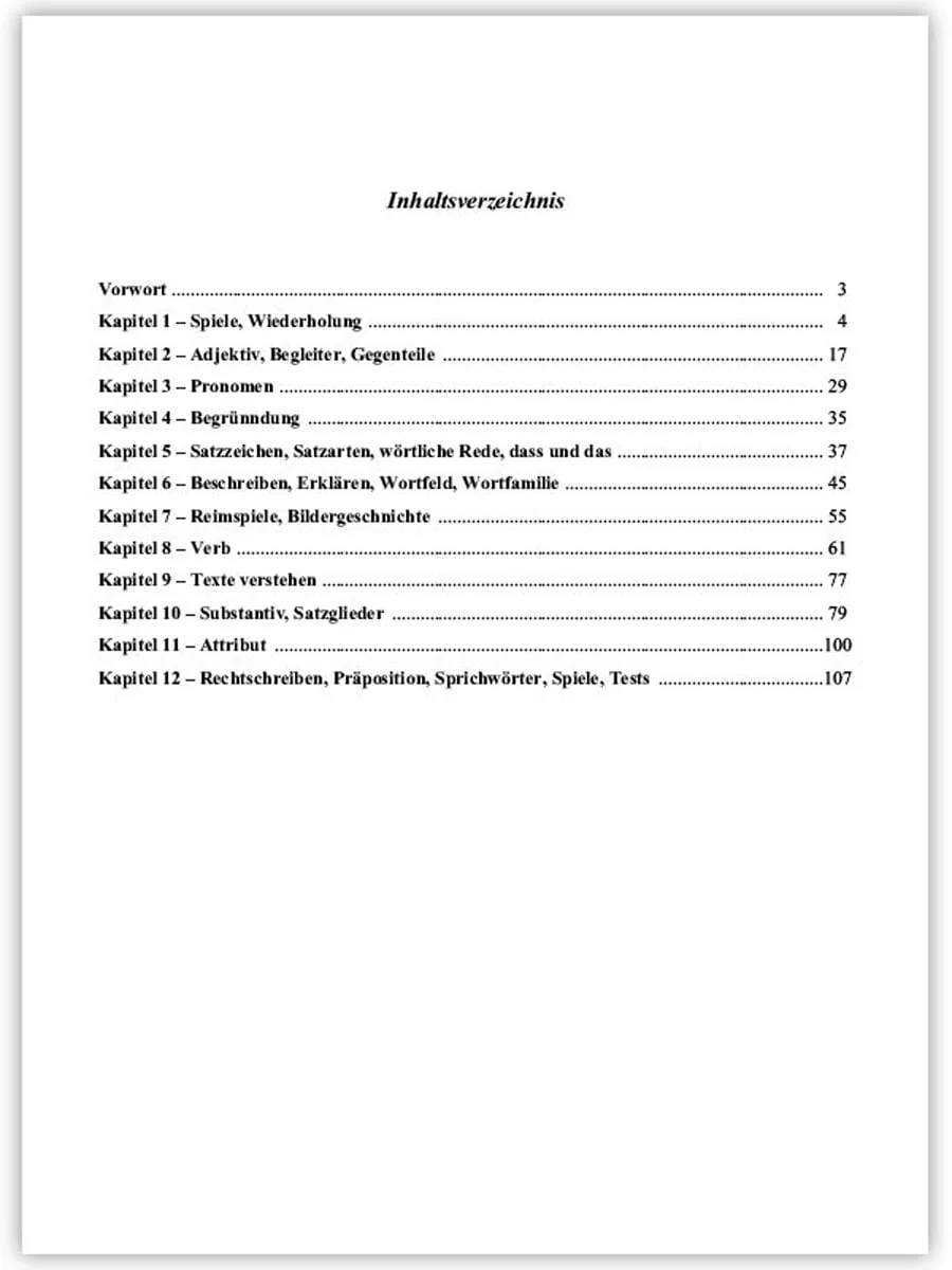 Culegerea cuprinde tipuri de exerciţii de gramatică, structurate tematic, urmărindu-se, pe de o parte, aprofundarea cunoştinţelor acumulate de către elevi, iar, pe de altă parte, completarea manualului de limba germană şi realizarea în totalitate a curriculumului de gramatică de clasa a V-a.