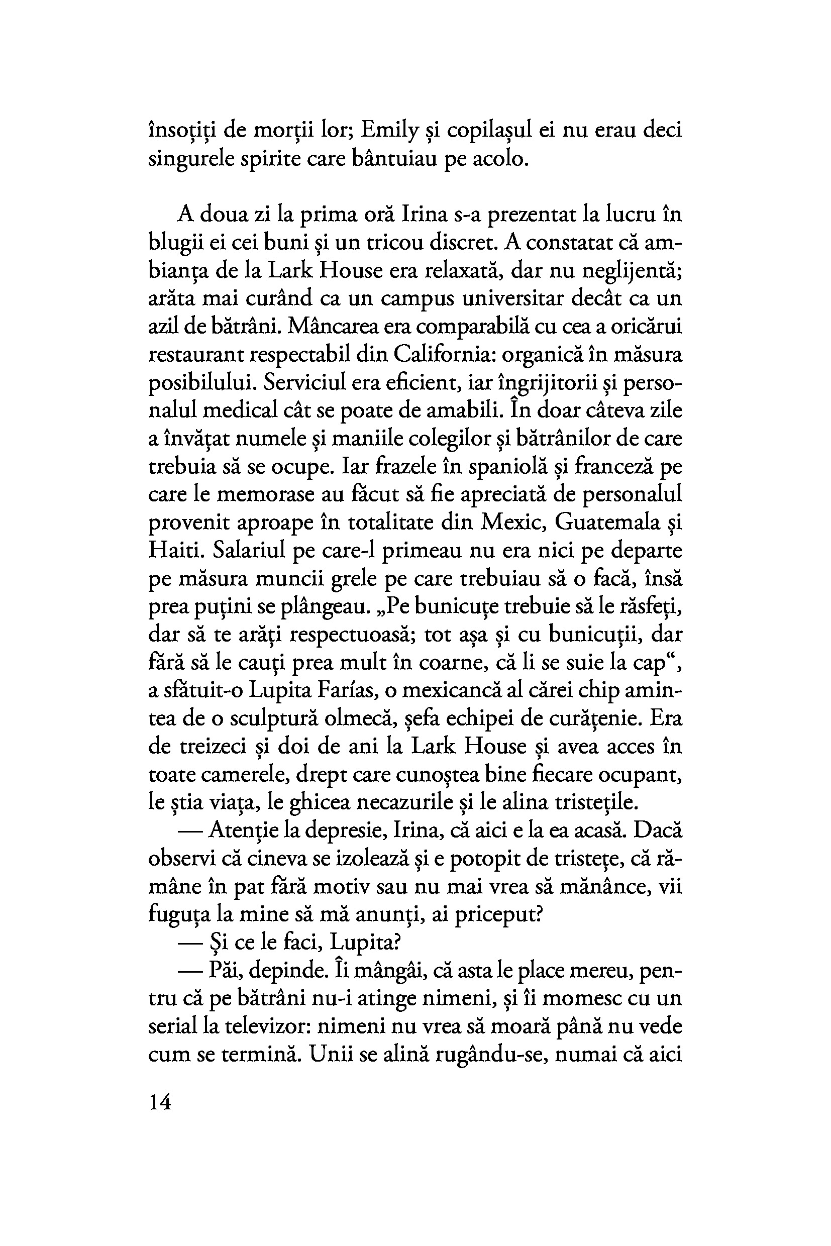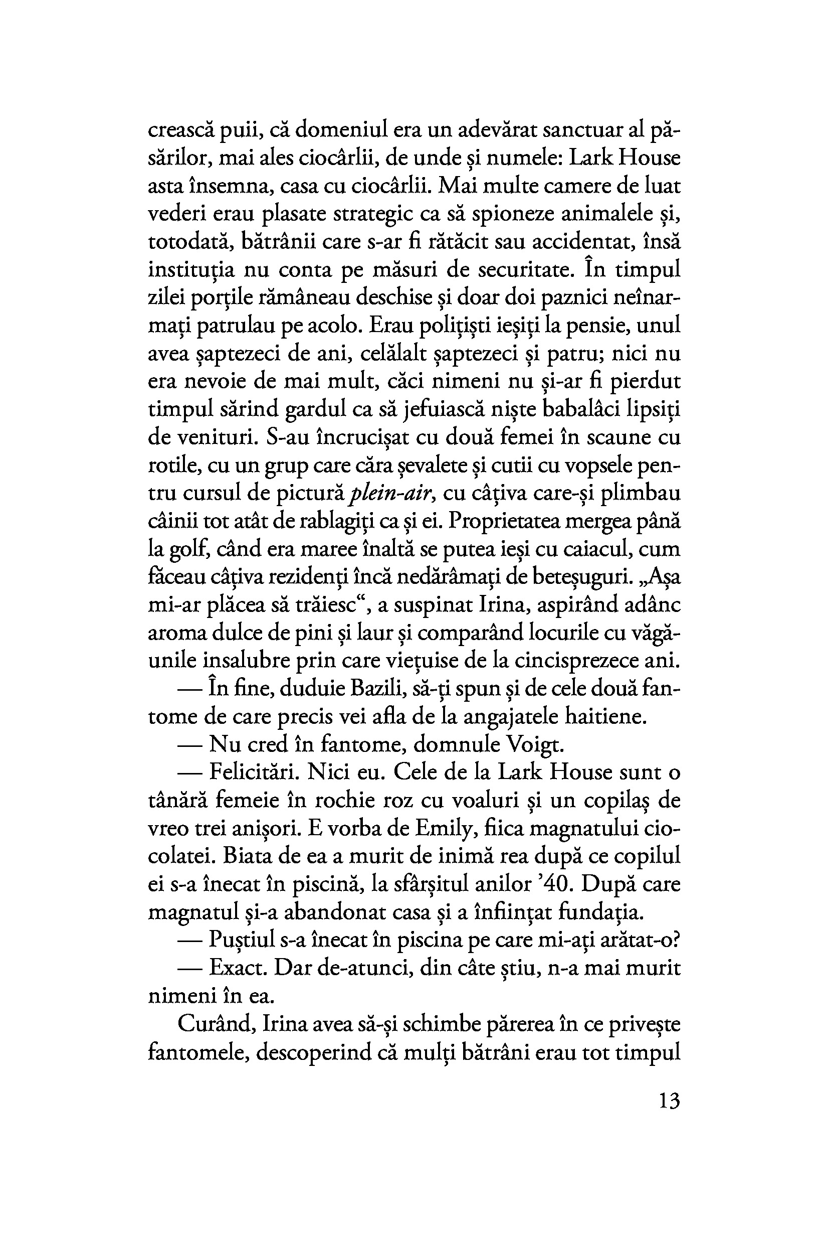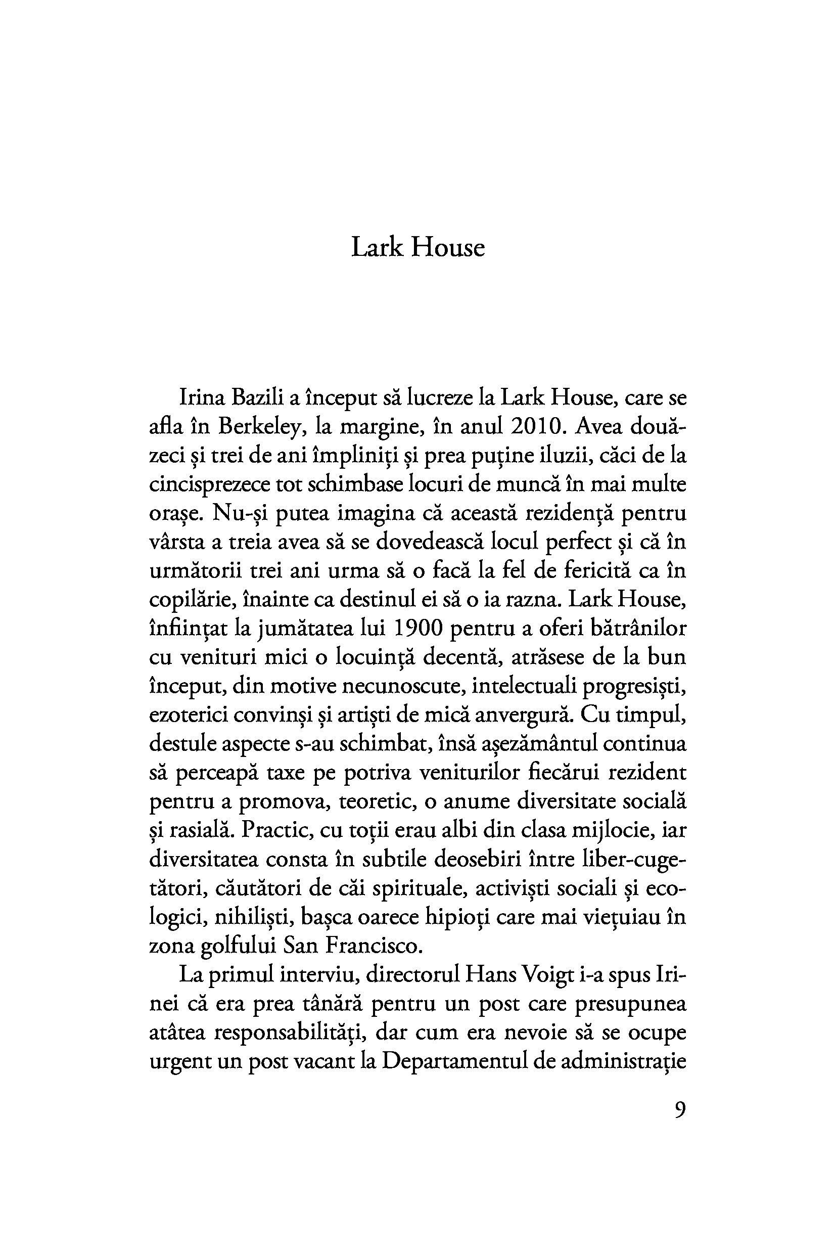 În 1939, când Polonia e amenințată de nazism, Alma Belasco e trimisă de părinți să trăiască la San Francisco, alături de mătușa și de unchiul ei, care locuiesc într-un conac opulent. Inițial timorată de noua ei familie și incapabilă să se integreze, Alma va avea în cele din urmă o legătură profundă, pentru toată viața, cu fiul grădinarului familiei, Ichimei. După atacul japonezilor de la Pearl Harbor, cei doi sunt despărțiți cu cruzime, iar Ichimei ajunge într-un lagăr, împreună cu familia sa. Multe decenii mai târziu, Alma e una dintre bătrânele excentrice care populează azilul de lux Lark House din San Francisco. Cu răbdare și infinită tandrețe, Irina Bazili, o tânără îngrijitoare din Republica Moldova cu o istorie tristă în propria biografie, ajunge să descopere treptat povestea de dragoste dintre Alma și Ichimei și își găsește în ea izbăvirea.