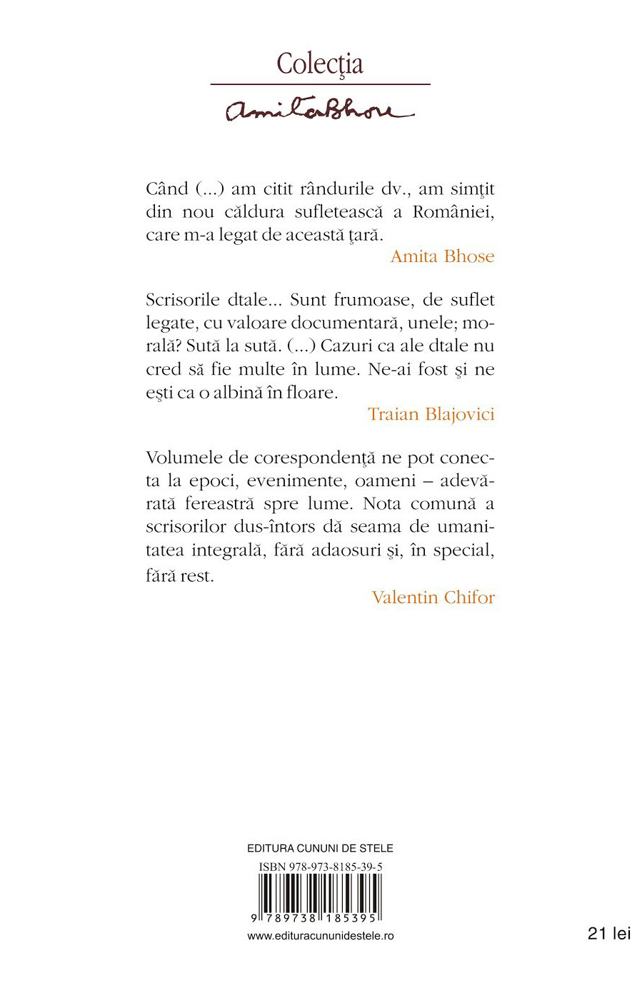 Cartea aceasta de corespondenţă s-a născut ca urmare a unei... corespondenţe începute pe 22 mai 2013, când îi scriam domnului Valentin Chifor, folosind mijloacele moderne – e-mailul – mijloc ce are rapiditatea ca singur avantaj, căci se pierde acel farmec al scrisului de mână, călătoria magică a unei scrisori într-un plic, poposind în cutia poştală a destinatarului.