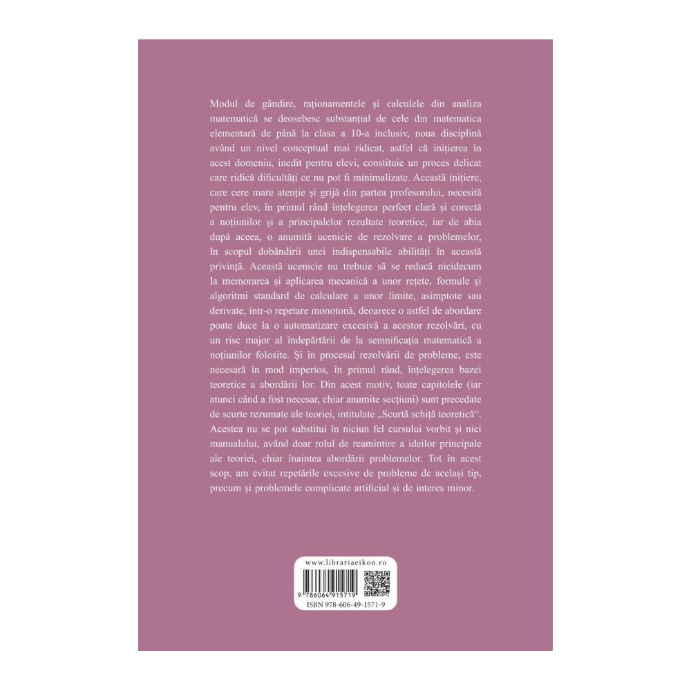 Modul de gândire, raționamentele și calculele din analiza matematică se deosebesc substanțial de cele din matematica elementară de până la clasa a 10-a inclusiv, noua disciplină având un nivel conceptual mai ridicat, astfel că inițierea în acest domeniu, inedit pentru elevi, constituie un proces delicat care ridică dificultăți ce nu pot fi minimalizate.