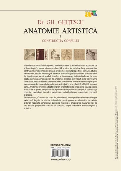 Metodele de lucru folosite pentru studiul formelor si materialul vast acumulat de antropologie in acest domeniu deschid anatomiei artistice largi perspective pentru adincirea principalelor sale probleme: studiul proportiilor corpului, studiul fizionomiei, studiul morfologiei sexelor, al morfologiei dezvoltarii, al variantelor de tipuri corporale si studiul tipurilor antropologice. Indepartindu-se de conceptia comuna a manualelor de anatomie artistica din trecut, cele trei volume care alcatuiesc aceasta lucrare trateaza problemele formei exterioare si expresiei corpului din punctul de vedere al aplicatiei in arta plastica. Gindita in acest sens, Anatomia artistica adopta un plan orientat dupa principalele etape pe care analiza le-ar putea desprinde in reprezentarea plastica a corpului: constructia corpului, modelajul formelor exterioare, individualizarea aspectului corporal, expresia.