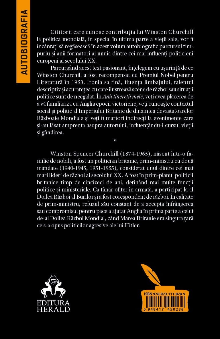 Cititorii care cunosc contributia lui Winston Churchill la politica mondiala, in special in ultima parte a vietii sale, vor fi incantati sa regaseasca in acest volum autobiografic parcursul timpuriu si anii formatori ai unuia dintre cei mai influenti politicieni europeni ai secolului XX.