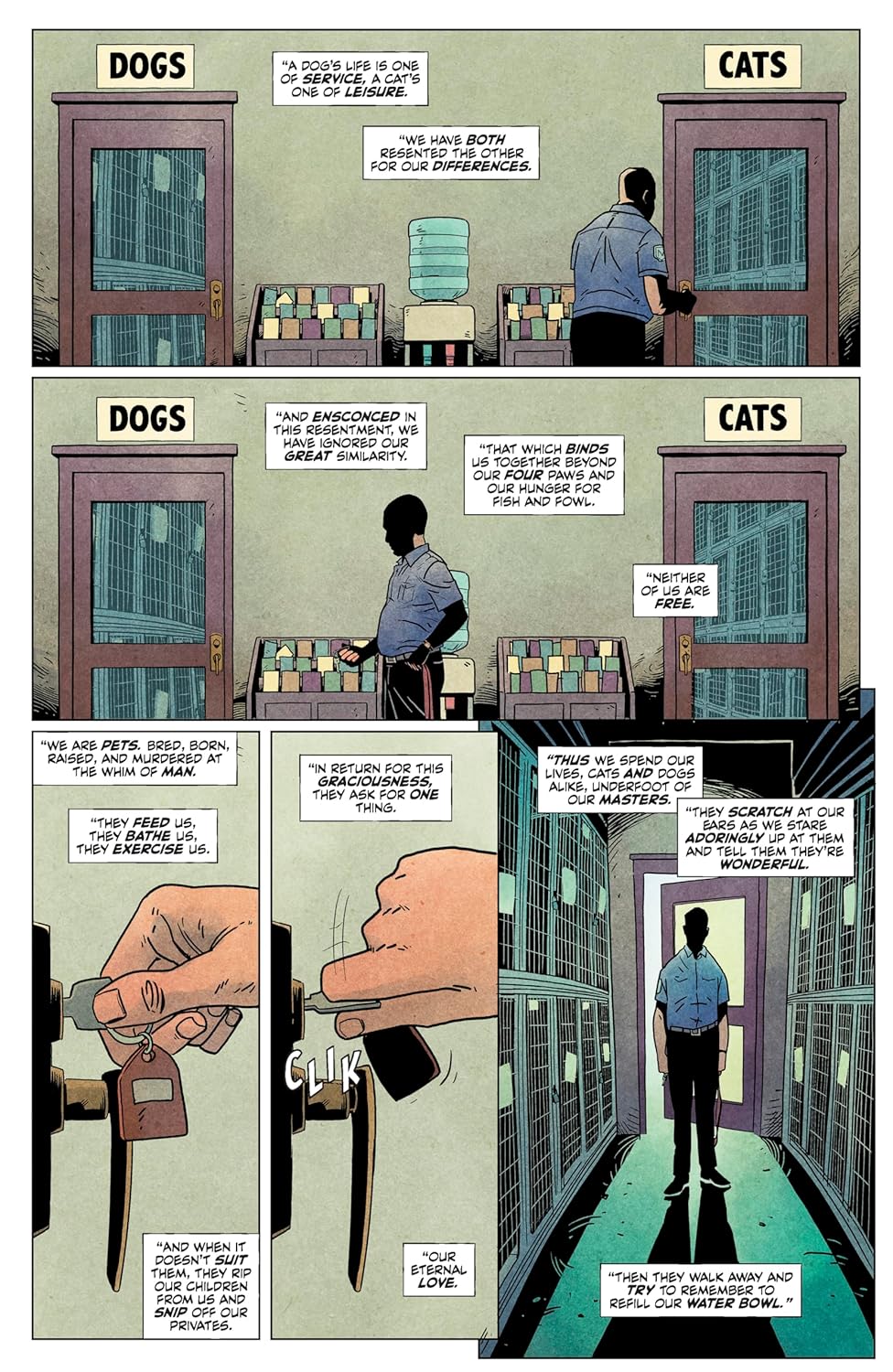 When animals grow tired of being caged and abused, it''s only a matter of time before they have nothing to lose but their cages... When an uprising puts a pound in control of the animals, they make quick comrades, united against everything that walks on two legs. But with this newfound power comes a sudden challenge: how best to lay the groundwork for this new democracy as they write their first constitution. The conditions are ripe for a dictator, primed for instating a new system of brutality and death. When two groups of animals work together will their efforts be enough to prevent further animal authoritarianism? Discover a timely graphic storytelling event from celebrated New York Times bestselling, Eisner Award-winning writer Tom King (The Human Target, Love Everlasting) and New York Times bestselling, Eisner Award-nominated artist Peter Gross (American Jesus, The Books of Magic), collaborating for the first time ever to bring this enduring Orwellian allegory to life for the 21st Century. Collects Animal Pound #1-5.